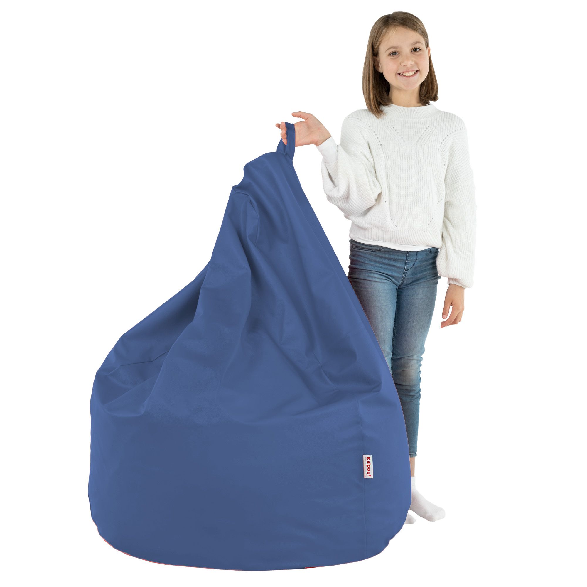 Azul puff pera para niños cuero ecológico Ver más grande