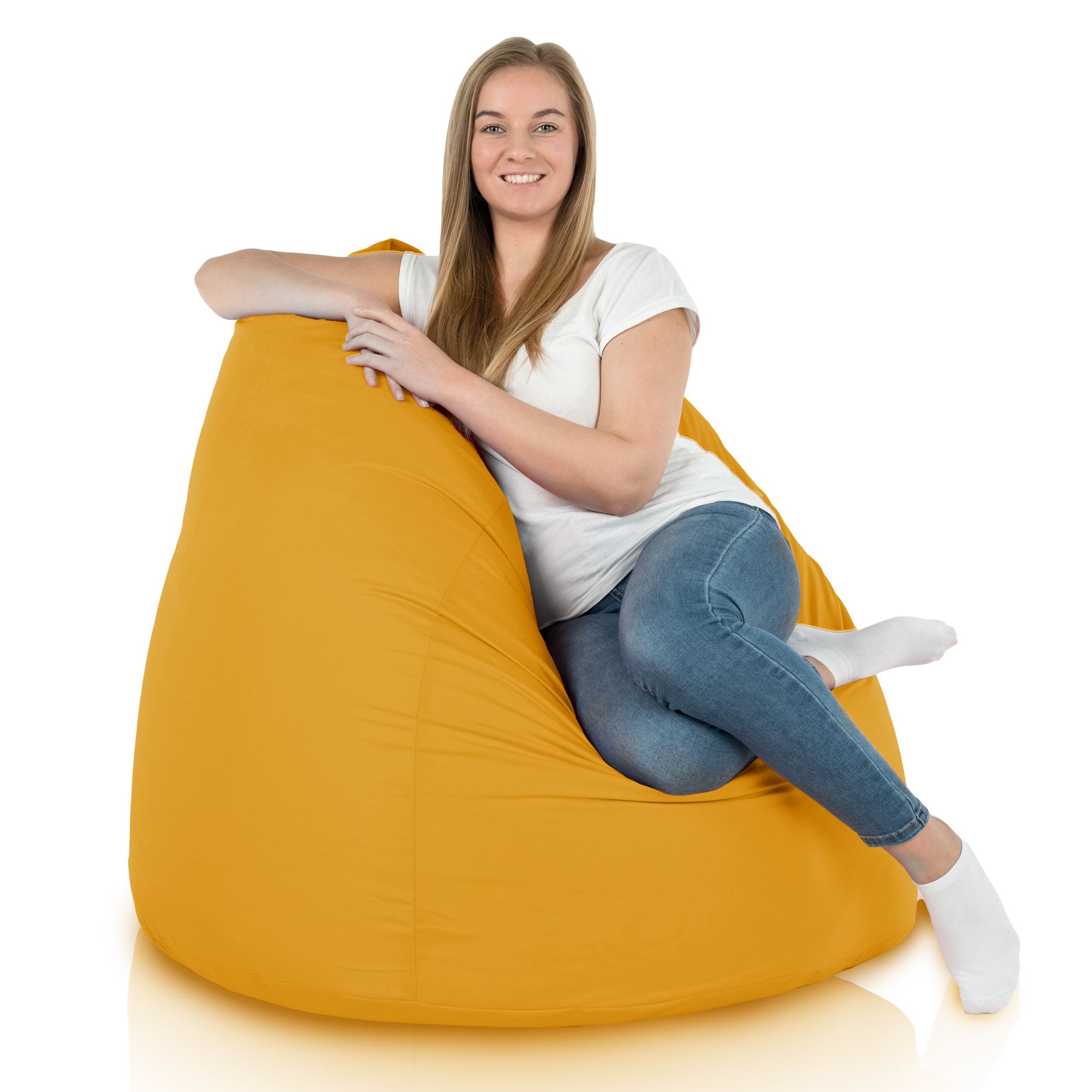 Un sensacional puff pera. Es muy cómodo y resistente, pero ligero, lo que permite llevarlo fácilmente fuera de casa. Su vivo color amarillo anima aún más el espacio y llama la atención. El puff pera ha resultado ser un éxito y gusta no sólo a los niños, sino también a los adultos. La recomiendo sinceramente